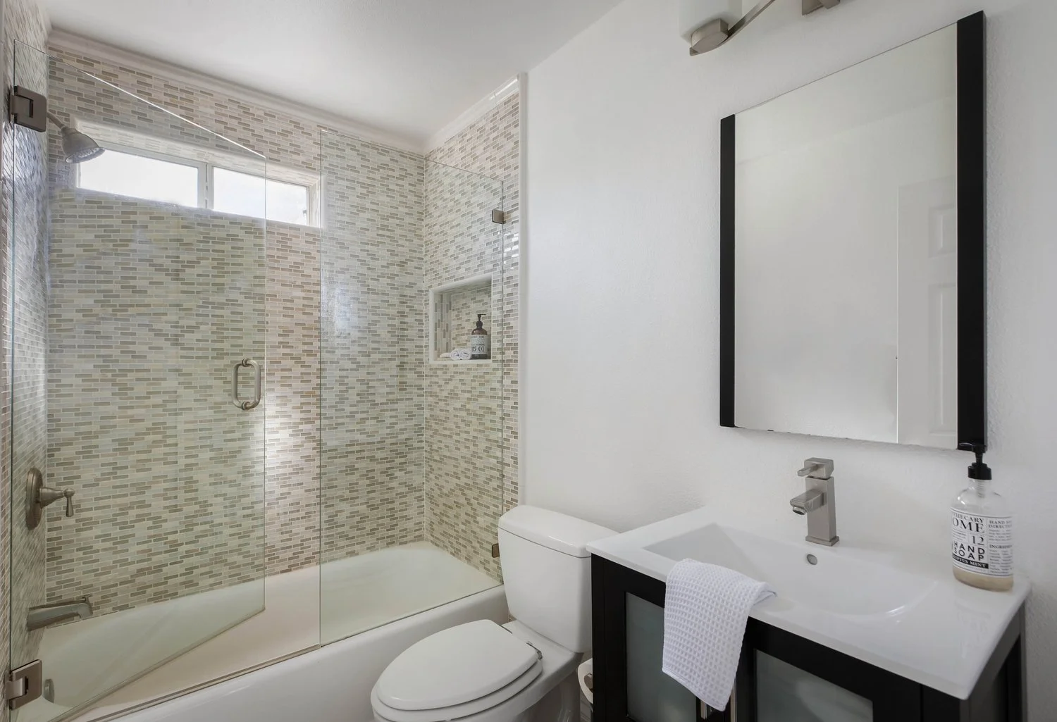 Set on an expansive lot in this highly coveted and quiet pocket of Winnetka, this beautifully remodeled home blends timeless charm with modern ease. With its bright, open-concept layout and curated finishes, the home is both functional and stylish - designed for everyday living as well as effortless entertaining. The living spaces are light-filled and inviting, featuring rich flooring, recessed lighting, and a sophisticated fireplace that anchors the family room. The living and dining rooms flow seamlessly together making conversation feel easy and intimate. Nearly every window is outfitted with classic plantation shutters, lending a sense of cohesion and warmth throughout. The spacious kitchen has granite countertops, tile backsplash, stainless steel appliances, and a generously sized pantry as well as an updated laundry room. The spacious primary suite includes two closets and a remodeled en-suite bathroom, while the additional two bedrooms and baths are equally well-finished. Practical features like dual- pane windows, central A/C and heat, and large two-car garage ensure year-round comfort and convenience. Outside, the private backyard feels like a personal retreat. A sparkling pool and spa are where friends and family can cool off during summer days or simply gaze at the stars in the evenings. The yard is a perfect blend of lush landscaping, large grassy yard, stone-paved patio and mature trees that many hummingbirds call home. A covered patio - complete with ceiling fans - extends the living space outdoors, perfect for dining al fresco or hosting guests.